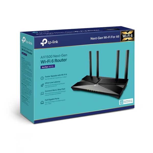 Experience next-gen wireless performance with the TP-Link Archer AX15 AX1500 Dual Band Gigabit Router. Powered by Wi-Fi 6 technology, this router delivers ultra-fast speeds up to 1.5Gbps and higher efficiency even when multiple devices are connected. Its 1.5GHz Tri-Core processor ensures stable and responsive performance, while advanced OFDMA and MU-MIMO reduce latency for smoother streaming and gaming. The Archer AX15 comes with TP-Link HomeShield, offering enhanced security and parental controls to protect your network. With Gigabit ports for high-speed wired connections and easy management via the Tether App, it’s a perfect choice for modern smart homes that demand strong, reliable, and secure Wi-Fi coverage.