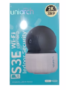 Uniview Uho-S3E-M3 3MP Indoor Pan & Tilt Wi-Fi Camera is a smart security solution for home or office. It features a 3MP 1/3″ CMOS sensor that delivers clear video at 2304×1296 resolution and supports multiple frame rates. The camera offers dual stream video compression with Ultra 265, H.265, and H.264 formats for efficient bandwidth usage. With pan range of 355° and tilt range from -15° to 90°, it provides wide area coverage. It supports 20 preset positions and auto tracking. The 4.0mm fixed lens offers an 86.4° diagonal field of view. Smart IR allows night vision up to 10 meters, and the built-in mic and speaker support two-way audio for real-time communication.